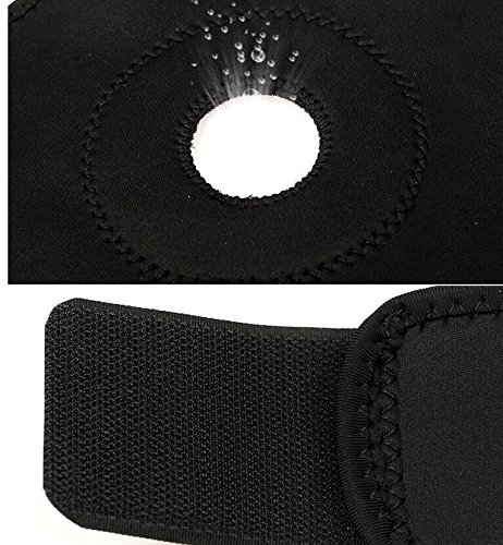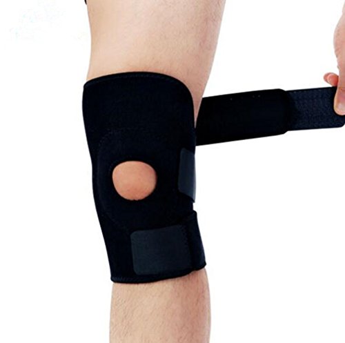 -. Feature : Made of 50% Polyester fiber ,15% Nylon, 20% Rubber,10% PU, 5% Spandex / Allergen free and anti-slip, it is very comfortable to use / Adjustable with durable . Open knee brace protector / Applicable for Knee pain and discomfort, mild strain / sprain, knee fatigue, patellar instability, fitness, sports and so on / Wonderful companion when you play football, basketball, volleyball, mountaineering, etc