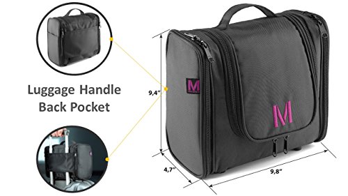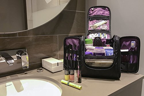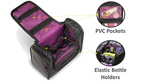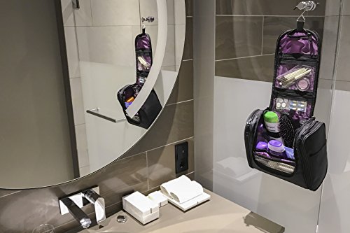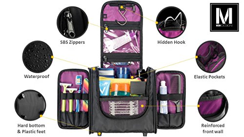 MBM Design Hanging Toiletry Bag - Travel Organizer For Women Cosmetic Makeup And Men Shaving Kit (Black & Purple)