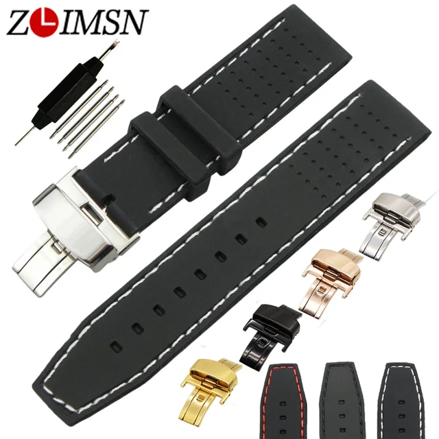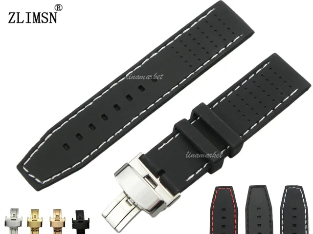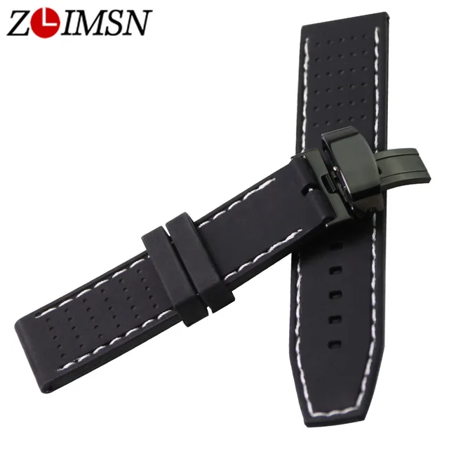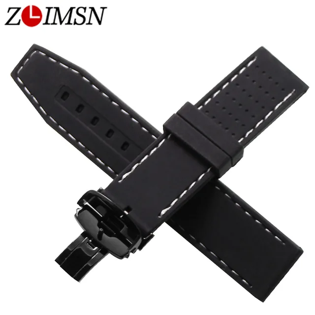 ZLIMSN 22 미리메터 스포츠 방수 실리콘 고무 손목 시계 나비 버클 화이트 레드 블랙 스티치 시계 스트랩 Relojes 아저씨 2017