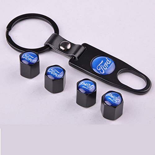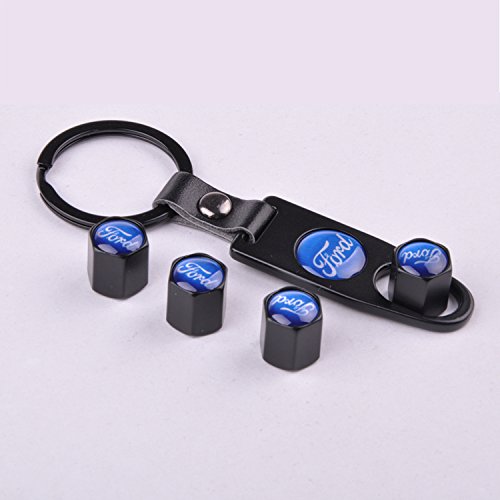 Set of 4 Car Tire Valve Stem Air Caps Cover + Keychain For Ford Blue