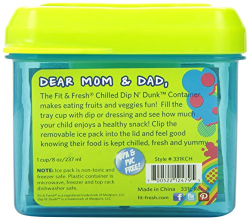 Fit & Fresh Kids' Dip N' Dunk Snack Container, 1-Cup Reusable Portion Control Food Container with Removable Ice Pack, BPA-Free, Freezer/Microwave/Dishwasher Safe