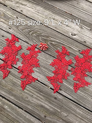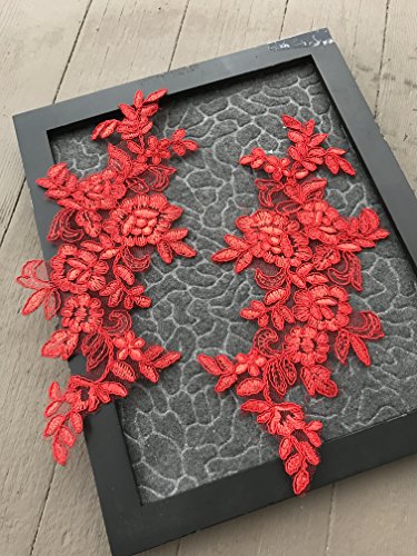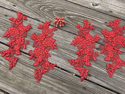#125 TWO Pairs Red Color Lace Appliques ,Wedding Applique, Lace Appliques, Embroidered Appliques (Red)