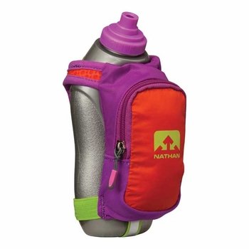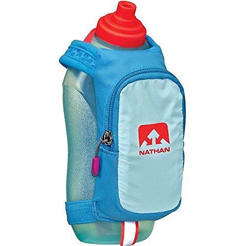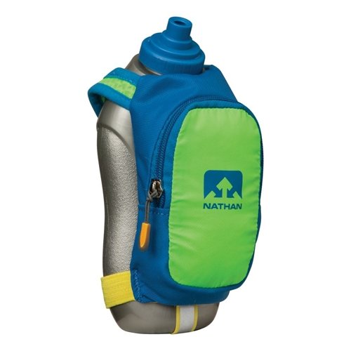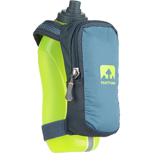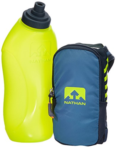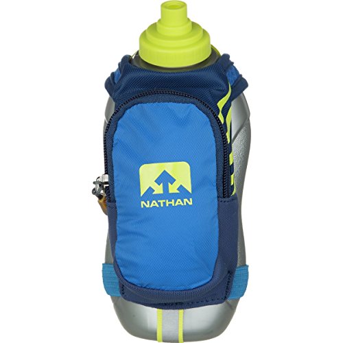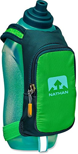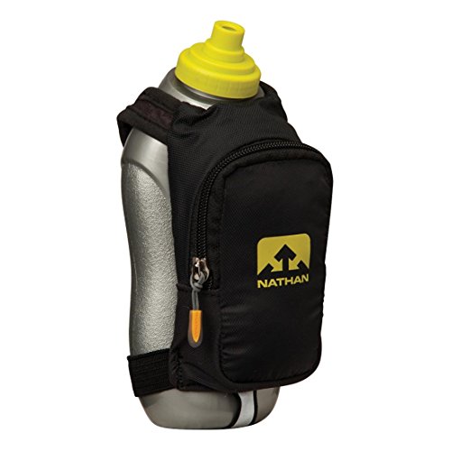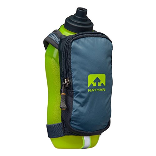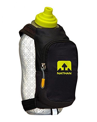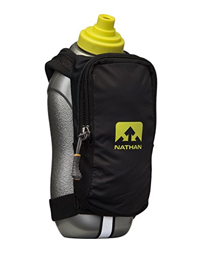 Studio : Nathan Publisher : Nathan Binding : Sports Product Description FEATURES of the Nathan SpeedDraw Plus BlackLight Hydration Handheld Black reflective fabric is deceivingly super-reflective and provides incredible visibility 18 oz / 535 ml Speed Draw Flask with Race Cap offers quick bursts of fluid Fully adjustable hand strap with thumbhole enables grip-free running Large, expandable, zippered pocket carries phone, keys, ID and other running essentials SPECIFICATIONS of the Nathan SpeedDraw Plus BlackLight Hydration Handheld Weight: 3.9 oz / 110.6 g Storage Capacity: 12.7 cubic inches / 0.21 liter 0