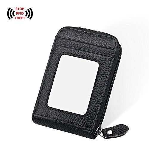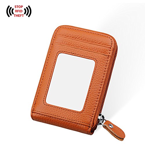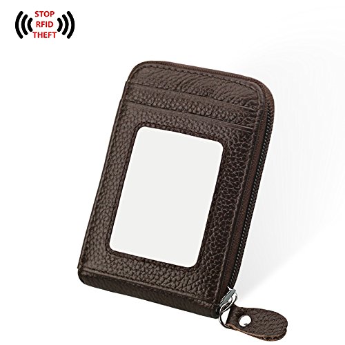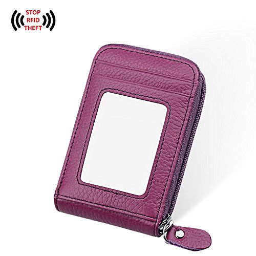 -. Title : Women's Genuine Leather RFID Secure Spacious Cute Zipper Card Wallet Small Purse