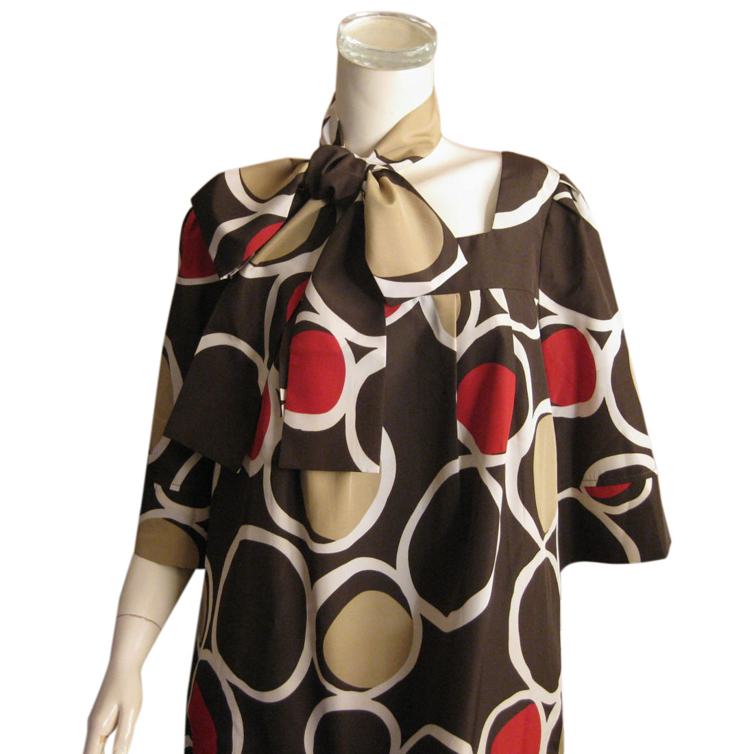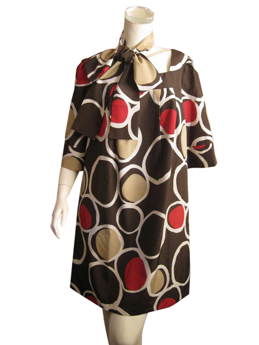 | 【大柄プリントが目を引くチュニックワンピース 裏地/リボンベルト付 15AR | |