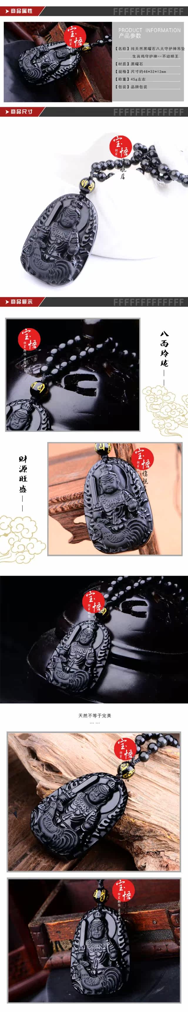 开光属鸡黑曜石不动尊菩萨本命佛吊坠不动明王守护神吊坠