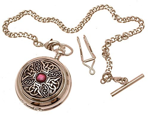 -. Title : Engraving included - Solid pewter fronted mechanical skeleton pocket watch - Celtic Knot with stone design 7