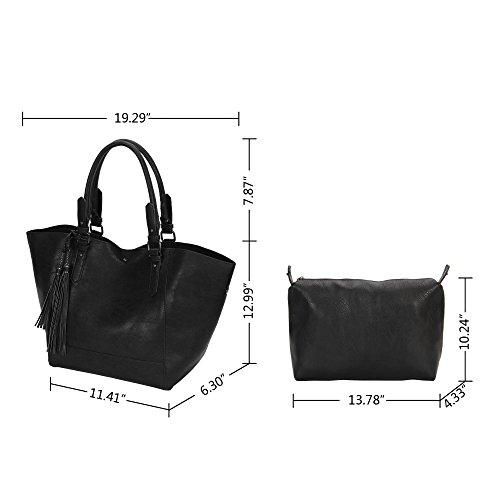 -. Brand : Hynes Victory -. Color : Black -. Department : womens -. Feature : Magnetic buckle closure / High-end soft synthetic leather. Shiny metal hardware, Fabric lining / Structure: 1 main large compartment practical tote bag. Detachable Purse: Inside has 1 center zip divider. Contains 2 slip pockets and 1 zip pocket / Dimensions: Tote bag: 11.42"L x 6.30"W x 12.99"H. Detachable Purse: 13.80"L x 4.33"W x 10.24"H. Handle drop: 7.87". Weight: 1.79 pounds / The shape can be changed. And the removable purse that comes with it, via buttons can be snapped into place inside to make for a more organized space! -. PackageQuantity : 1 -. ProductGroup : Shoes -. ProductTypeName : HANDBAG -. Size : Large -. Title : Hynes Victory Womens Tassels Large Tote Handbag with Pouch Purse