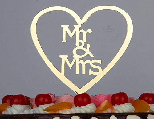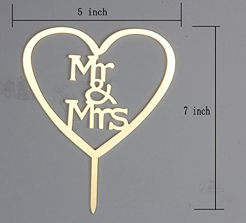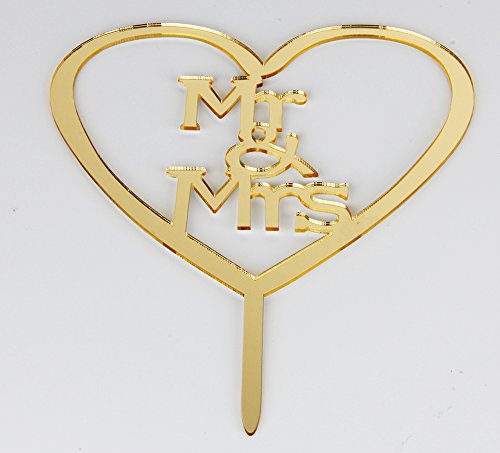 LOVELY BITON Mirrored Gold Mr and Mrs Wedding Cake Topper with Hearts and Customizable