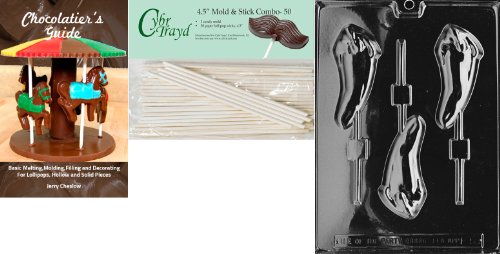 Cybrtrayd 'Hot Pepper Lolly' Fruits and Vegetables Chocolate Candy Mold with 50 4.5-Inch Lollipop Sticks and Chocolatier's Guide