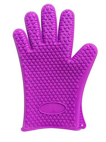 WELLSKEY Silicone BBQ & Oven Gloves - 2 Top Quality Heat & Water Resistant Cooking Gloves - Protective Outdoor Grilling Mitts (Purple)