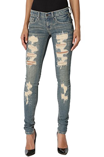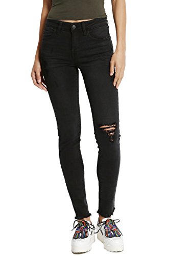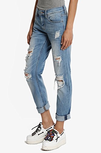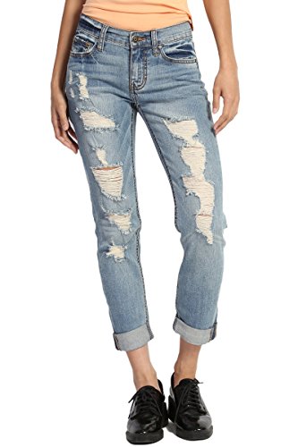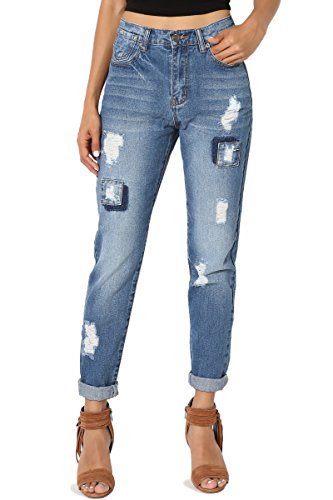 TheMogan Women's Distressed Washed Denim Mid Rise Boyfriend Jeans Medium 9