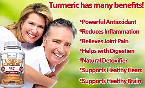 BIOPERINE FOR INCREASED ABSORPTION & EFFECTIVENESS - We added patented BioPerine (Black Pepper Extract) that is proven by clinical tests to increase bioavailability of Turmeric by as much as 4-times, making it much more effective than any other Curcumin formula. We also have 1000mg per serving (500 mg per capsule) giving you the best value by far!