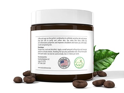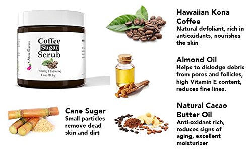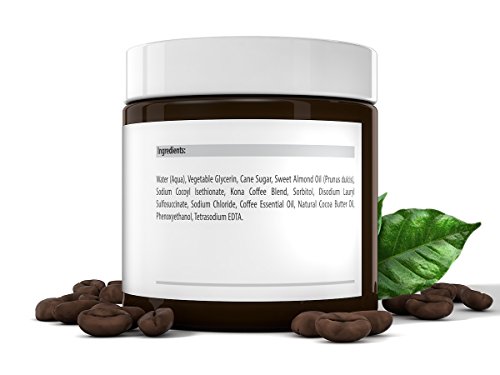 - ALL NATURAL INGREDIENTS, PARABEN FREE - Made with Hawaiian Kona coffee, cane sugar, sweet almond oil and natural cacao butter oil.