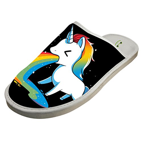 (JLL-CHAPY)/Women's/Slippers/DIRECT FROM USA/Rainbows Unicorn Bedroom Washable Mens Winter Slippers Flat Closed Toe Unisex Shoes
