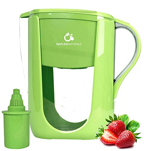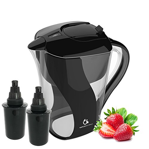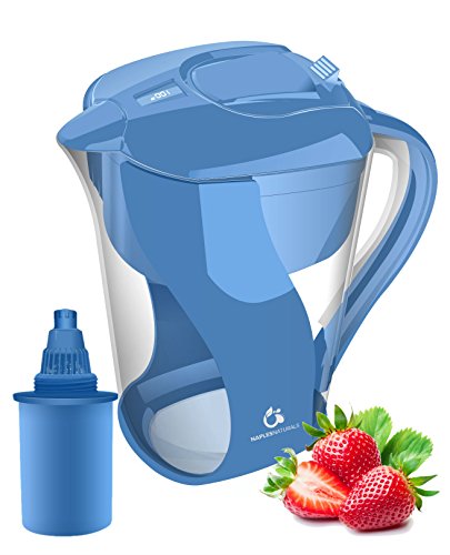 Newly designed filter cartridge to minimize the chances of clogging. Drink fresh clean great tasting water with the BPA FREE Naples Naturals 10 cup water filter pitcher. Sits right on your counter or in your refrigerator and is the perfect way to provide great tasting water. Features digital electronic filter life readout lets you know when it's time to change your filter. Newly designed screw in filter protects water better than the old drop in filter designs BPA free plastic easy fill convenient 10 cup capacity filter life the filter should be changed every 70 gallons or roughly 45-60 days depending on water usage directions rinse the filter under cold water for about 30 seconds. Gently Tap the filter on the counter (both sides) to ensure the media is proportioned nicely. Remove the water reservoir and screw the filter into the bottom of the reservoir and replace the assembly back into the pitcher. Fill and discard 2-5 pitchers or until the water is clear and there are no more Charcoal particles in the pitcher water. Fill and enjoy! the filter should be replaced every 70 gallons or when the filter replacement indicator signals a changed is needed. Do not use with hot water.Feature