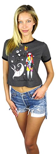 Nightmare Before Christmas Womens Crop Ringer Tee Grey Heather