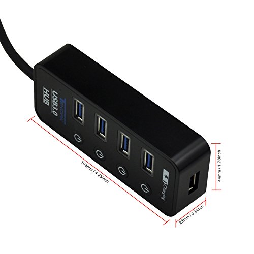 This Tendak USB 3.0 Hub is designed for expanding USB connections of laptops/computers. Features 4 USB3.0 ports and one smart charging port.