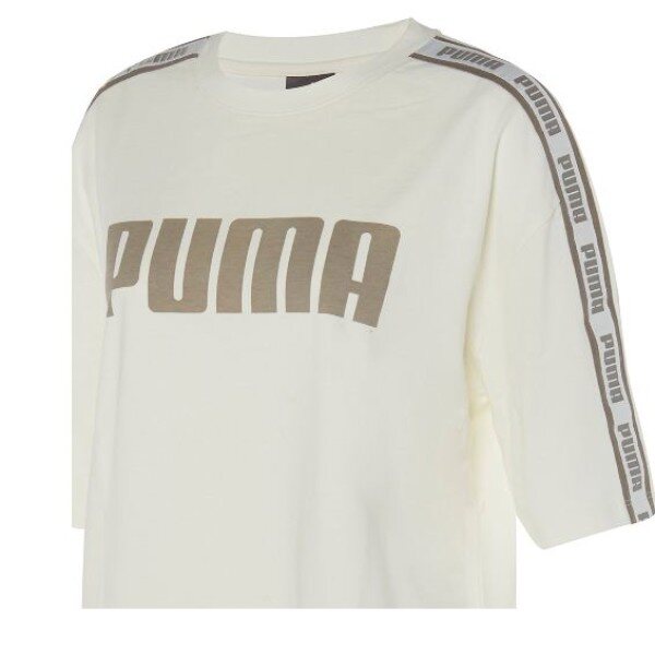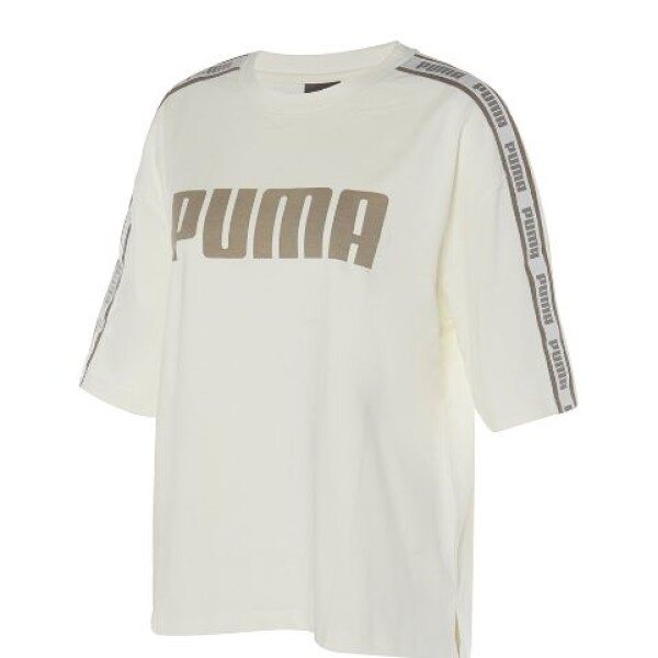 푸마 여성용 FD TAPE 반팔티푸마 로고 테이프가 소매에 덧대어진 루즈핏 여성용 반팔 티셔츠.푸마 로고 티셔츠 프린트 테이프가 어깨선을 따라 둘러져 잇고, 가슴에 위치한 PUMA 로고는 소프트하게 프린트되어 여성미와 레트로한 감성을 동시에 표현하는 제품. 앞면은 허리단에 넣을 수 있을 정도의 짧은 길이인 반면, 뒷면 길이는 약간 길어서 다양한 스타일링이 가능한 것이 장점.
