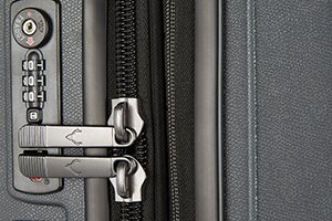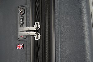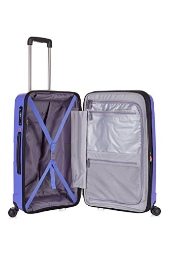 -. Feature : Scratch resistant finish / Up to 2 inches expansion / 2 Zippered pockets, plus an additional Self Contained 'Wet' pocket to give added protection for toiletries or a wet swim suite / Easy Glide 8 Wheel design for extra stability and effortless manoeuverability / Recessed TSA combination lock