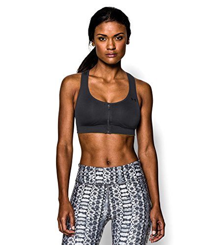 Super-smooth HeatGear® fabric delivers the ultimate chafe-free comfort. Built for High-Impact support so you can concentrate on your moves and not on what's moving. Lightweight, 4-way stretch fabrication improves range of motion and dries faster. Signature Moisture Transport System wicks away sweat to keep you cool, dry, and light. Anti-microbial technology keeps your gear fresher, longer. Power mesh back panel offers superior breathability where you need it most. Slimmer racer back design unlocks mobility and is great for layering. Fast zip front features of chafe-free hook & eye closure for extra security. Color-coded cup size makes it easier than ever to find your perfect fit. Built specifically for C-cup fit and performance. Clear gel logo. Polyester/Elastane. Imported.Feature