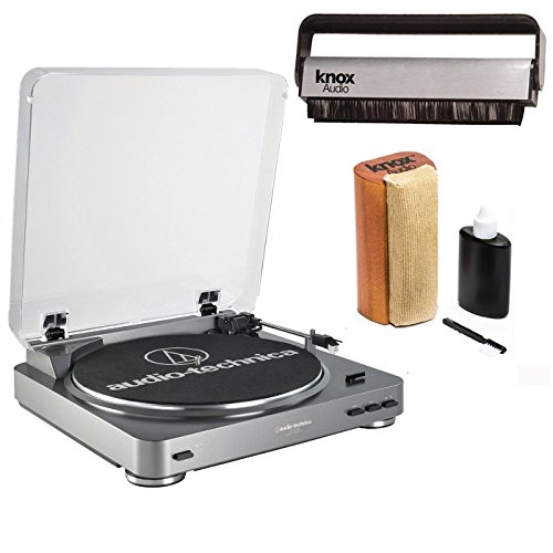 Audio-Technica AT-LP60 Turntable with Knox Carbon Fiber Vinyl Brush and Cleaning Kit (Silver)