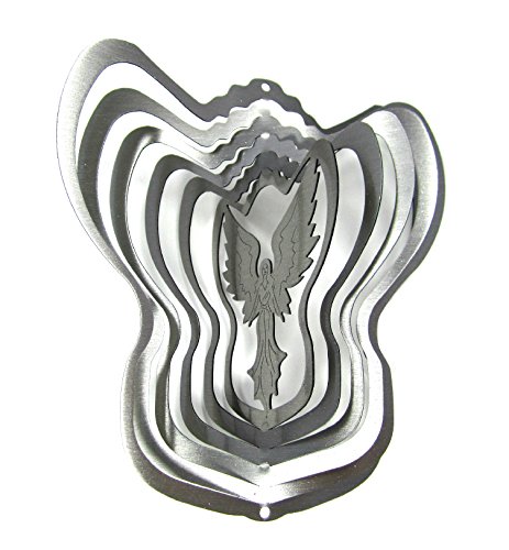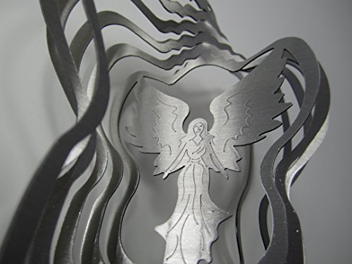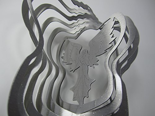 Shipityourway 6.5" 3D Wind Spinner Silver Angel Wings Powder Coated Metal Yard Art Lawn Garden Twister Swivel Hook
