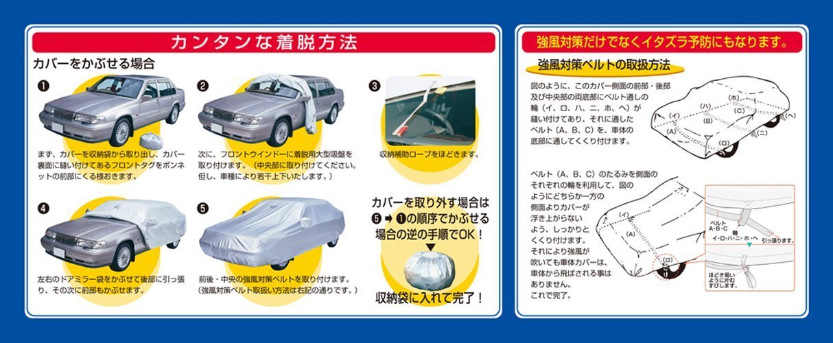 ● Prevents painting and stains caused by air pollution (exhaust gas, etc.), acid rain, ultraviolet light, yellow sand, sand dust, salt damage, night dew, frost, sap, bird draft, mischief.