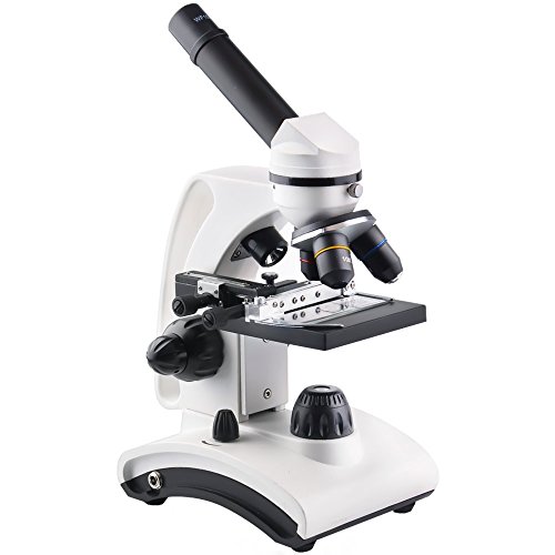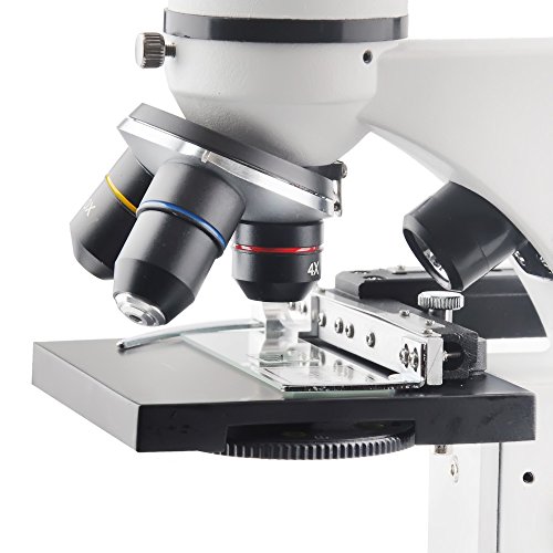 360 degree rotatable monocular head offers Large Range of Magnification: Objectives x4, x10, and x40 with eyepieces x10 and Barlow Lens giving a magnification range of x40 to x800 Optical glass monocular microscope with top & bottom LED lights.