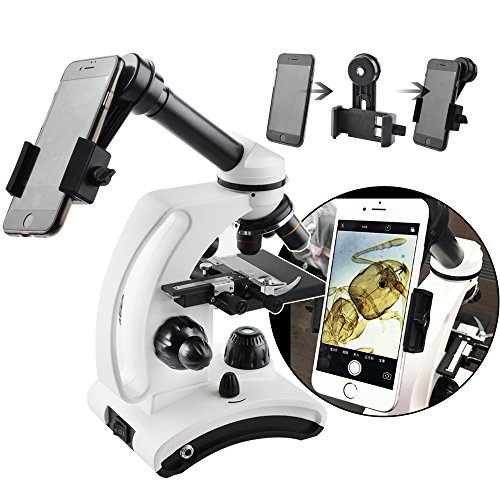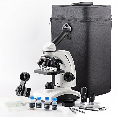 SOLOMARK COMPOUND STUDENT MONOCULAR MICROSCOPE WITH SMARTPHONE ADAPTER, 40X - 800X ALL METAL OPTICAL GLASS LENSES WITH MICROSCOPE PREPARED, BLANK SLIDES AND BLACK STORAGE BAG
