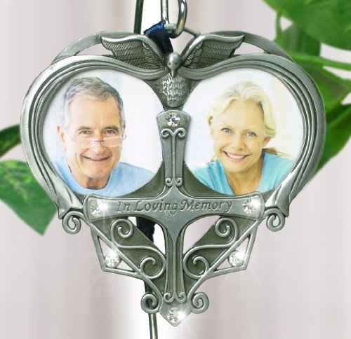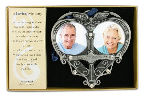 SYMPATHY GIFTS FOR THE LOSS OF A LOVED ONE. Beautiful metal photo ornament comes gift boxed with a loving memorial poem that reads "Even as the sun goes down to end the light of the day it's rising on a new horizon somewhere far away and though our world seems darker for the loss of those we miss we know our loved ones lives had dawned in a brighter world than this".