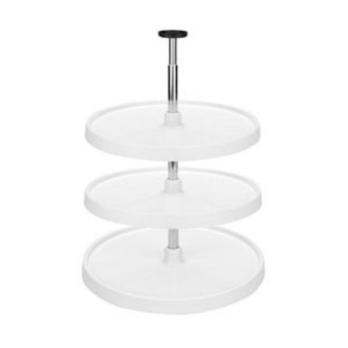 -. Feature : 3 independently rotating circular shelves / Telescoping shaft accommodates cabinets 38-46 inches high / Polymer shelves available in white or almond / Available in 18- or 20-inch diameter