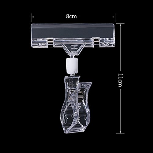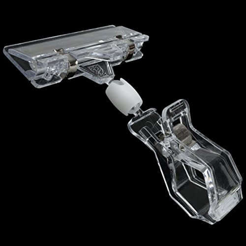TEKEFT 15 Pcs Merchandise Sign Display Clip Holder- POP Clip Label Display Clip Merchandise Tag Holder (Double Clip, Transparent) (Transparent M)