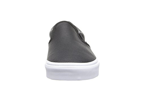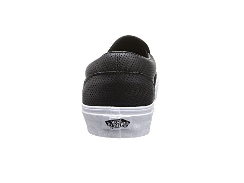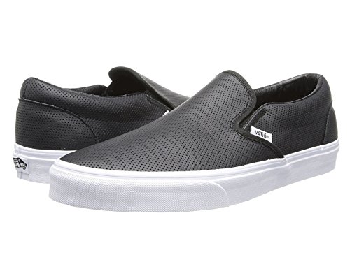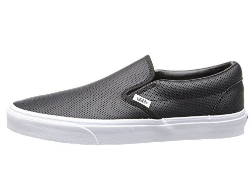 Studio : Vans Publisher : Vans Binding : Shoes Product Description Classic skate tries refined casual on for size in this leather edition Vans Slip-On. Features include a leather upper with allover perforations, stretchy midfoot goring for easy on-and-off, padded collar, and vulcanized rubber sole with waffle tread. 0