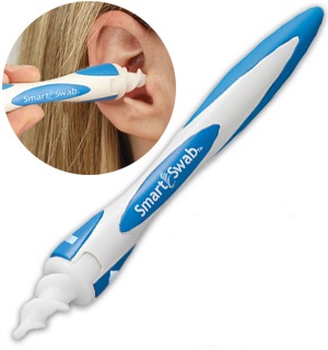 Clean your ears the smart way! Simply twist the Smart Swab™ handle and the soft, flexible tip with spiral grooves easily removes the earwax. Includes 16 tips and a storage case.