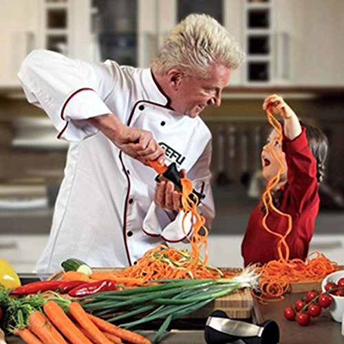 - Vegetable Spiral Slicer is the perfect tool to make healthy garnishes for dinners, parties, special event and any other expensive models. Works great for veggies like carrots, zucchinis, turnips, rutabagas, cucumbers, large radishes and healthy vegetable meals.
