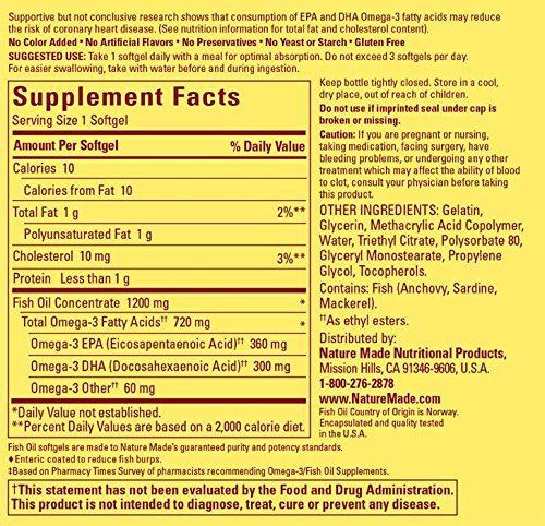Trust your health with Nature Made Fish Oil. The Omega-3's in Fish Oil may reduce coronary heart disease risk. They protect the heart by keeping cell membranes flexible and healthy.Feature