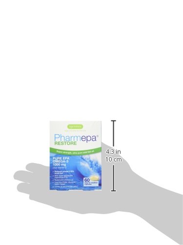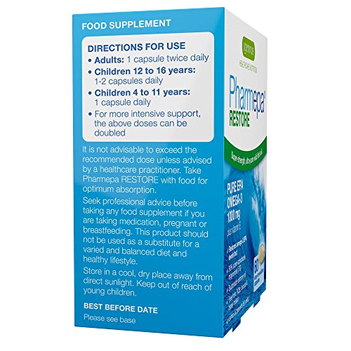 Pharmepa RESTORE triple strength 90% concentration omega-3 fish oil delivers 1000 mg daily doses of EPA omega-3 for intensive support. Taking EPA in doses in excess of 1000 mg daily helps to restore the appropriate balance between omega-3 and omega-6 fatty acids, while the rTG form of omega-3 delivers higher levels of EPA and DHA into cells, faster. Pharmepa RESTORE provides 500 mg of active EPA in each softgel, from 90% concentration fish oil, so the softgels are small and easy to swallow (typically half the size of most fish oils). Large omega-3 capsules can overload the body, reduce absorption and increase the risk of the body producing unwanted lipid peroxidation products, so we deliberately use small capsules to support split dosing twice daily; this optimizes absorption so that users reap the full benefits of EPA – and in the safest way possible. This pharmaceutical-grade fish oil is in a very absorbable triglyceride form and offers exceptional purity. Nature-identical triglyceride (rTG) omega-3 is the most effective form of omega-3 at delivering EPA and DHA directly into cells where they are needed most, because it is the only type of omega-3 to offer high concentration and strong bioavailability as well as optimal doses of active ingredients. rTG omega-3 increases cellular omega-3 levels 5x more than krill oil and 3.5x more than standard fish oil. Molecular distillation ensures the oil is free from PCBs, dioxins and mercury. Each batch is 3rd party tested to guarantee the quality and this supplement is produced in GMP accredited facilities.