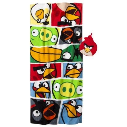 Launch some fun into your bathroom with an Angry Birds Bath Towel/Wash Mitt Set. This cool bath towel is decorated with bright graphics of Angry Birds and Bad Piggies in bold colors. It's made of 100% cotton to be soft and super absorbent. The Angry Birds towel comes with an Angry Bird wash mitt that kids love using in the bath or shower.