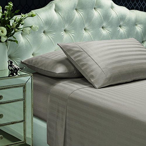 300 Thread Count 100% Cotton Sheet Set, Stripe Sheets, Soft Sateen Weave,King Sheets, Deep Pockets,Hotel Collection,Luxury Bedding-Bestseller- Super Sale 100% Cotton,Hazlenut by Dream Castle