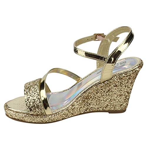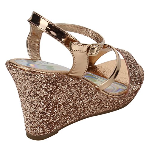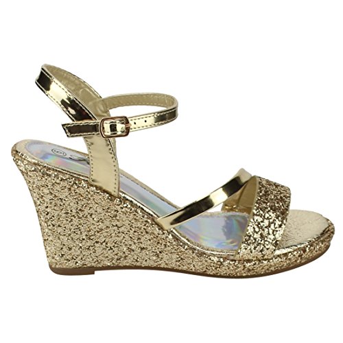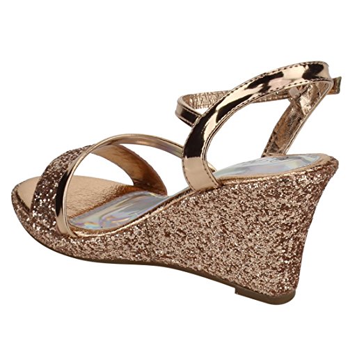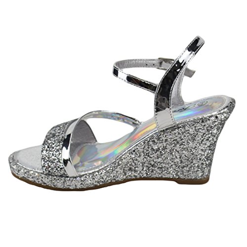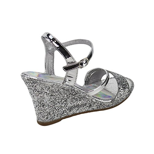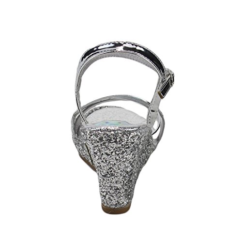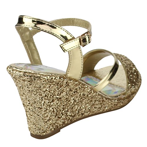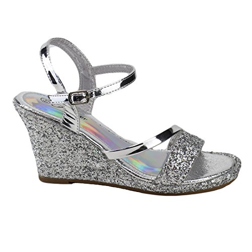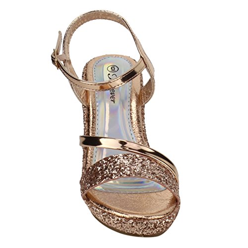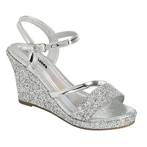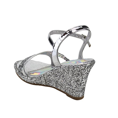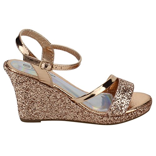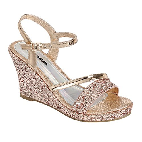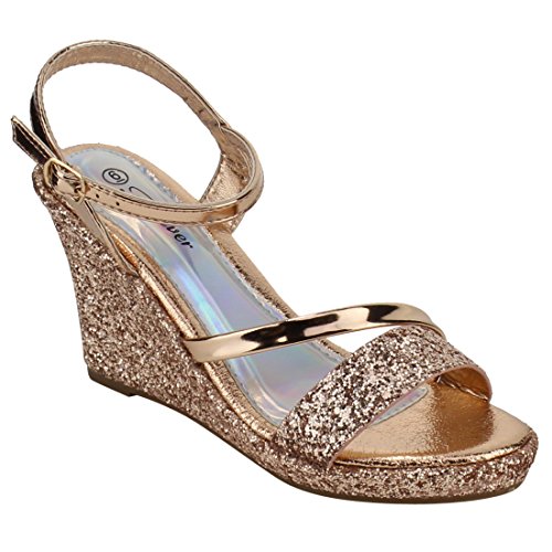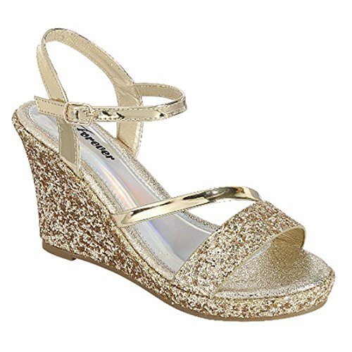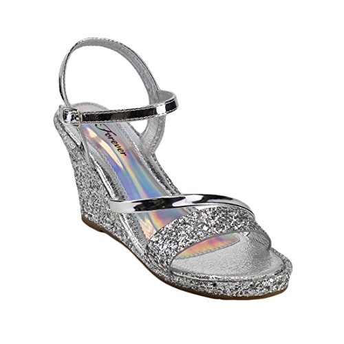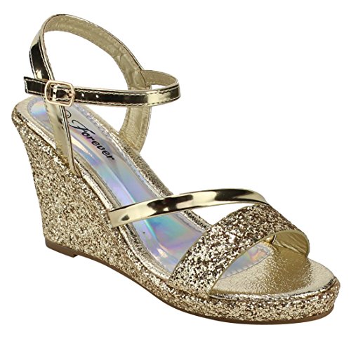 FOREVER FQ54 Women's Glitter Ankle Strap Wrapped Wedge Heel Platform Sandals