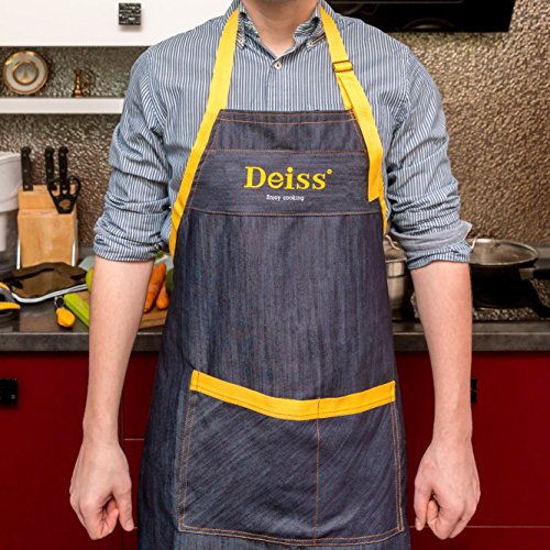 - EASY TO WASH AND STORE ★ The denim apron is fade-proof and machine-washable. There are no complicated care instructions – just choose a temperature between 30-35°C and tumble-dry at low heat. Deiss Chef Apron resists wrinkles and creases, so you can easily store it in a drawer or kitchen cabinet.