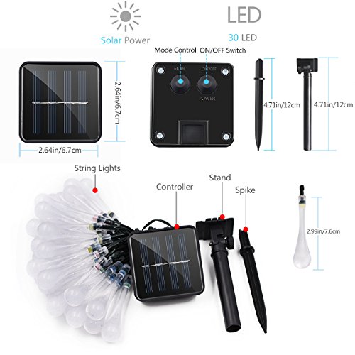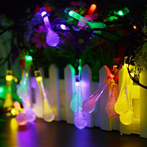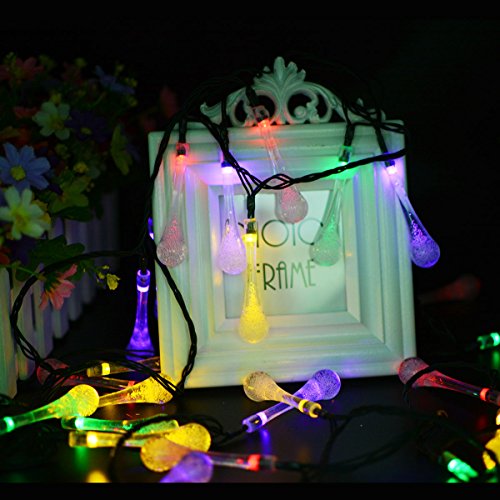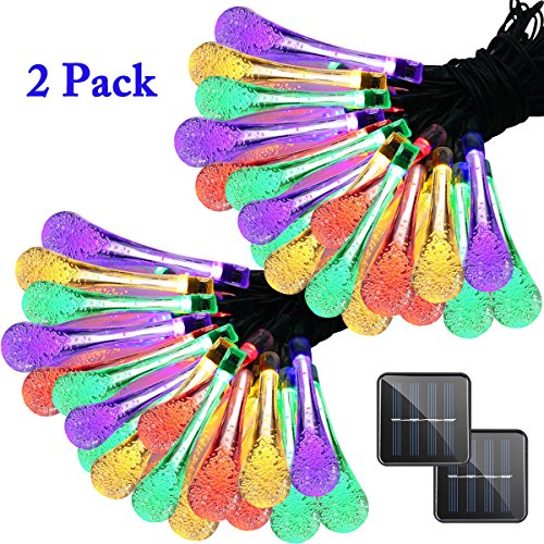Vmanoo Christmas Decorative Solar Powered Lights, 30LED 19.7ft 8Modes Water drop Fairy String light for Outdoor, Indoor, Home, Patio, Lawn, Garden, Party, Wedding, Gift,Waterproof 2 PACK (Multi-color)