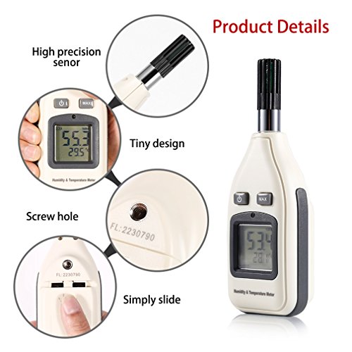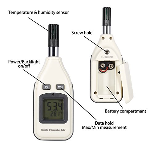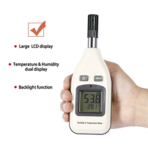 Humidity and Temperature Meter, LESHP Portable Hand-Held Digital Thermometer Hygrometer Tester Tool with LCD Backlight and Sensitive Sensor for Real-Time Monitor in Indoor and Outdoor