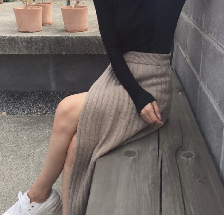 ニットでスリットが入っているので、スッキリしてかわいいです♡