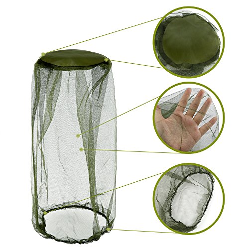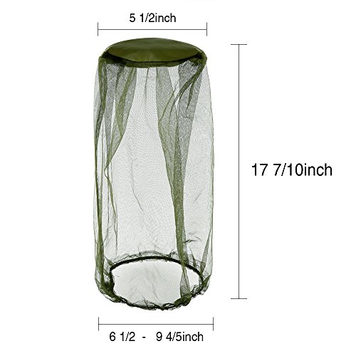 -. Feature : Anti-mosquito Design: The Mosquito Mesh Head Net is made from durable elastic materials, which has very dense meshes, it can prevent mosquitoes and other Insects effectively, elastic design at the bottom ensures a snug fit to neck / Visibility: Dark green mesh design can block the sun effectively and offer high visibility / Material : nylon cloth, elastic material and 70D nylon mosquito netting, durable, soft, collapsible and portable / Size: approx 17 7/10 x 17 7/10 inches/45 x 45cm, a comfortable size for most headgear,it's length arrived in collar and can protect the entire neck, for a better experience a wide all-round brim hat is recommended / Wide Application: mosquito head net keeps flying Insects, mosquitoes, flies & bugs out of your face and provides a comfortable environment when you fishing, hiking, camping, traveling, cycling or hunting