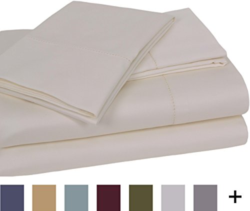 Elite Home Andiamo Solid Collection Single Ply 500-Thread Count 100-Percent Egyptian Cotton 4-Piece Queen Sheet Set, Ivory