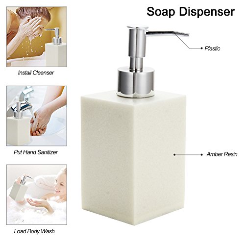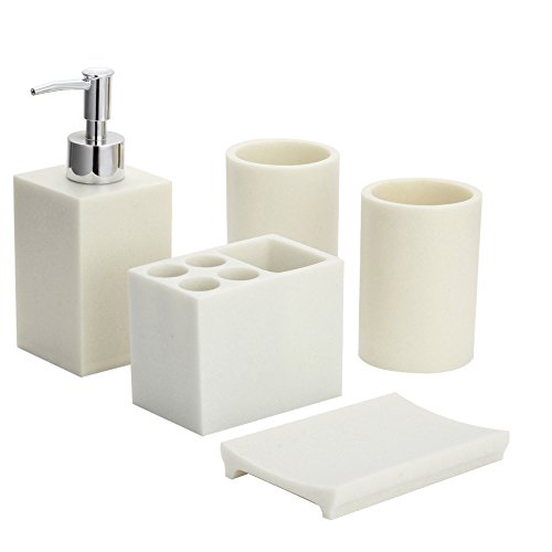 - Complete Bathroom Accessory Sets-- 2 styles for the sets: Sand White, Amber Gold. At least one of them will match your bathroom’s style and coordinate your bathroom. The resin material is not easy to break. Warm water wash before use. Money back guarantee.