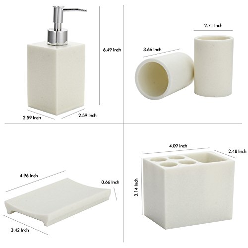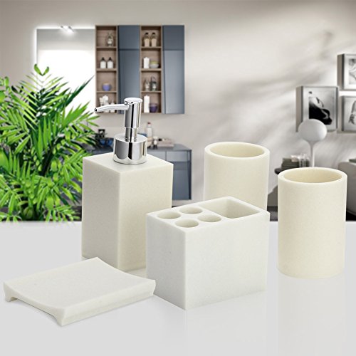 Hotab 5pcs Durable Resin Bathroom Accessory Sets Bath Ensemble Include Soap Dispenser, Soap Dish, Toothpaste and Toothbrush holder, and 2pcs Tumbler (Sand White)