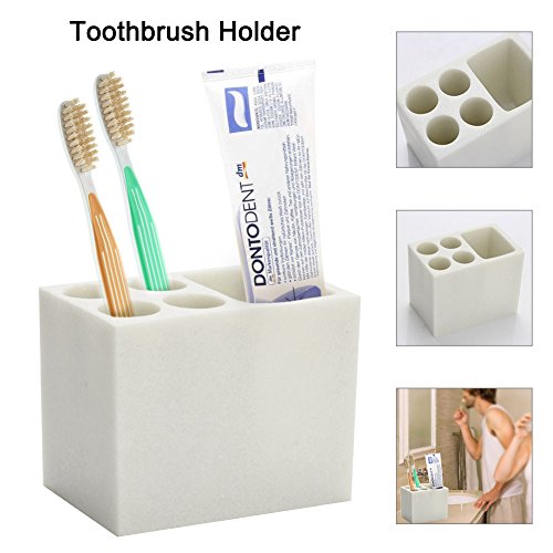 - Toothpaste and Toothbrush Holder-- Size at 4.09*2.48*3.14inch. Appropriate hole not only can hold the toothbrush and toothpaste in the bathroom, but also can hold the blusher brush, and eye shadow brush on the dressing table.